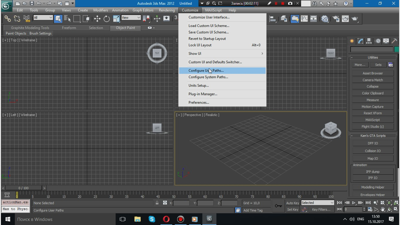 So, after you install the 3ds Max 2012 (and Product Update 12 if your 3ds Max is 32 bit and your Windows is 8, 8.1 or 10) and the plugins/tools you need to launch 3ds Max and customize the interface for the conversion.